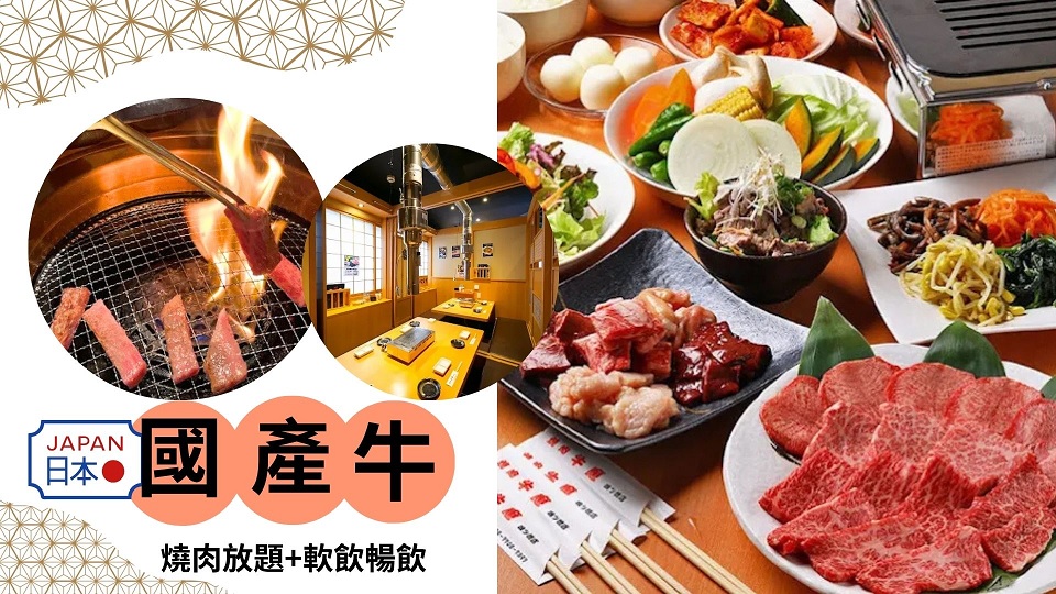 日本國產牛+豬肉+雞肉燒烤吃到飽+軟性飲料無限暢飲(約3800日幣) 或 飯店內用餐 或 日式風味料理